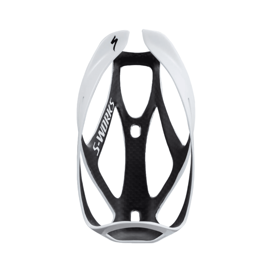 El nuevo portabotellas S-Works Carbon Rib Cage III mantiene la estructura de fibra de carbono 100% FACT y la compatibilidad con SWAT™ de antaño e incluso mejora la sujeción de botellas en rutas muy difíciles. El diseño dividido también proporciona una carga previa para sujetar las botellas de forma segura, a la vez que facilita al máximo la colocación de las mismas.